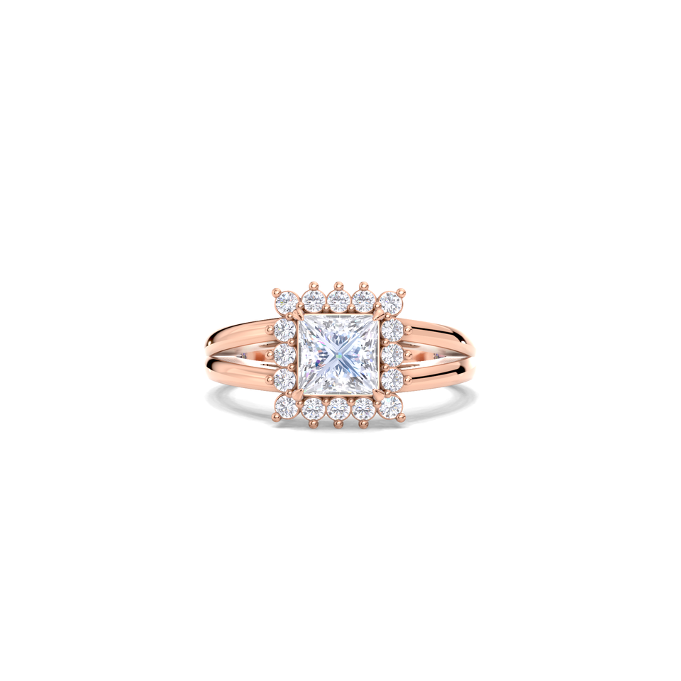 Elegant 1.28ctw Princess Cut Diamond Halo Ring | 9K Yellow White And Rose Gold Classic Square Halo Anniversary Ring