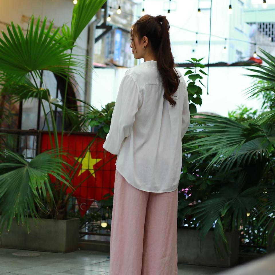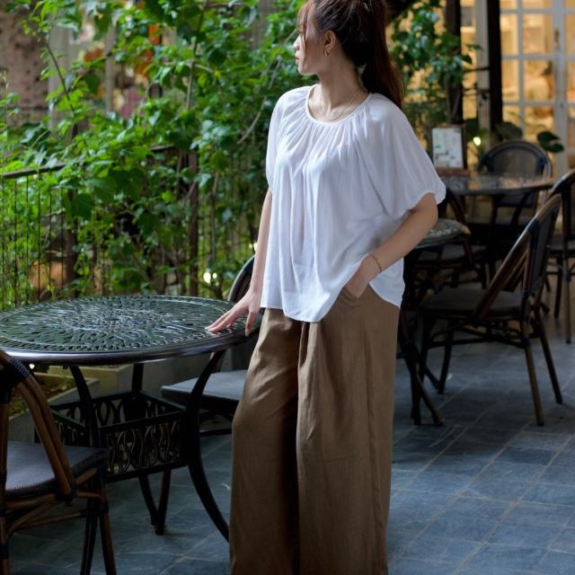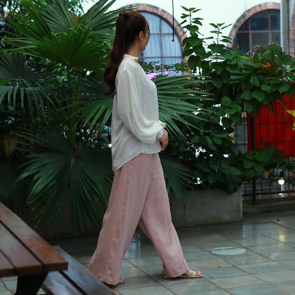 Elegant 100% Ramie Fabric Blouse with Easy Pant Design Mid Waist and Flat Front Style for Effortless Comfort and Luxurious Feel