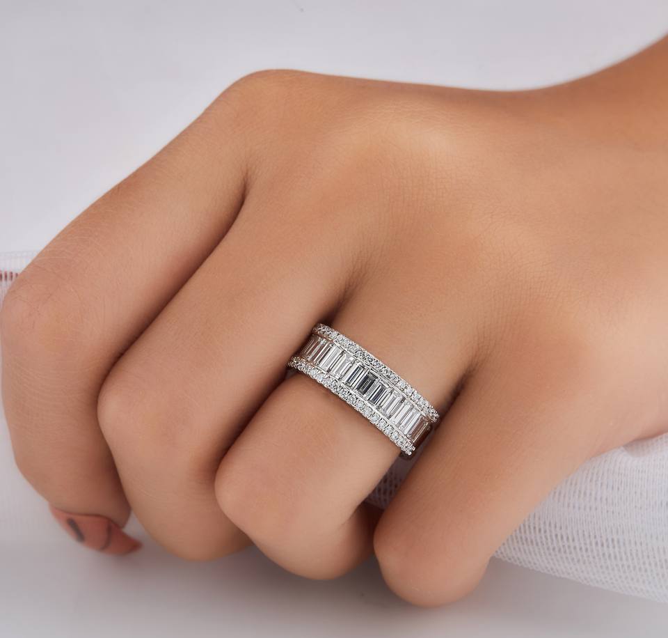 แหวนแต่งงานทองคำแท้ 14K 18K ชุบโรเดียม ดีไซน์ทันสมัย ประดับเพชรทรงบาแก็ตต์ 2.00 กะรัต คุณภาพ VVS-VS เพชรเลี้ยงในห้องปฏิบัติการ ขายส่ง