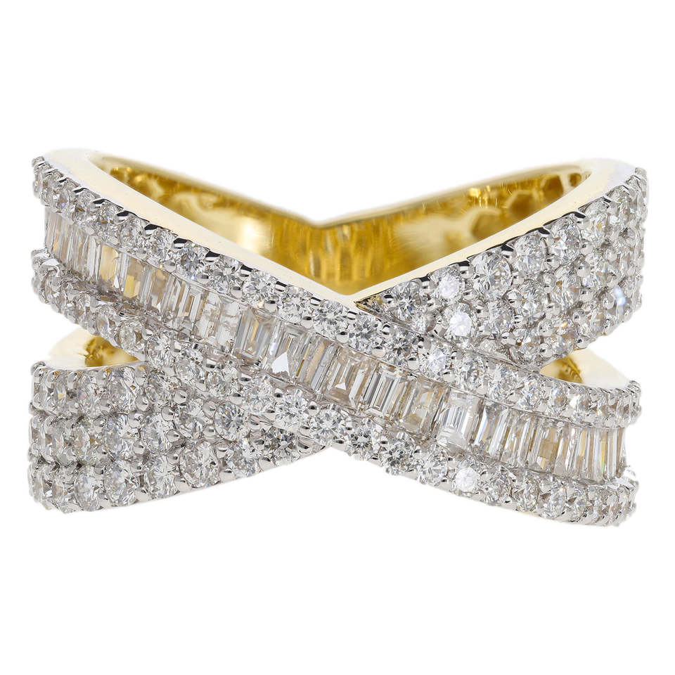 แหวนเพชรชุบโรเดียมสุดคลาสสิกประดับด้วยเพชร14K อันประณีตดีไซน์แบบไขว้ที่ประณีตและมีการตัดที่ยอดเยี่ยมแบบกลม