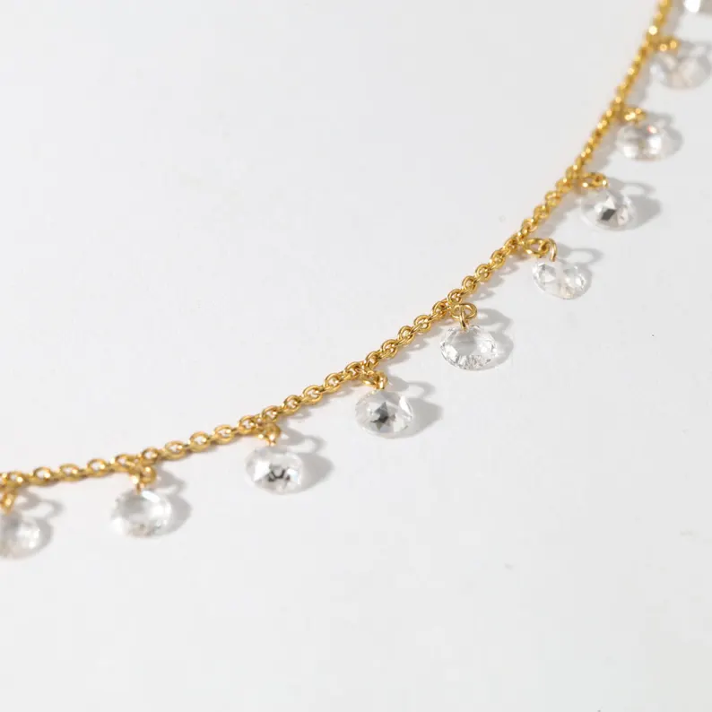 สร้อยคอทองคำ 14K ประดับเพชรเลี้ยงในห้องปฏิบัติการ ดีไซน์หยดน้ำ ประดับด้วยโซ่แบบเลเยอร์ สวยหรู เหมาะเป็นของขวัญสำหรับเธอ