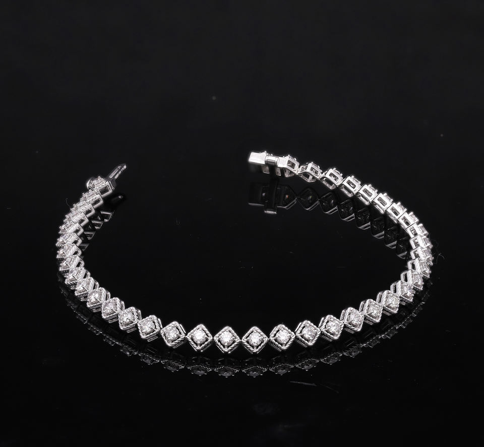 สร้อยข้อมือเพชรแท้ชุบทองคำขาว 14K ดีไซน์เรขาคณิตทรงสวยหรูสำหรับผู้หญิง ประดับเพชรทรงเหลี่ยมเจียระไนอย่างวิจิตร สง่างามเหนือกาลเวลา