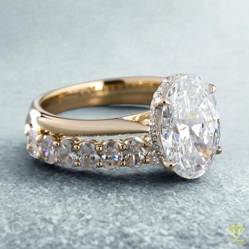 แหวนหมั้นชุบทอง14K สุดหรูพร้อมแหวนรูปวงรีและสายคาดเพชรเข้าคู่ของขวัญเครื่องประดับงานแต่งงานแบบคลาสสิก