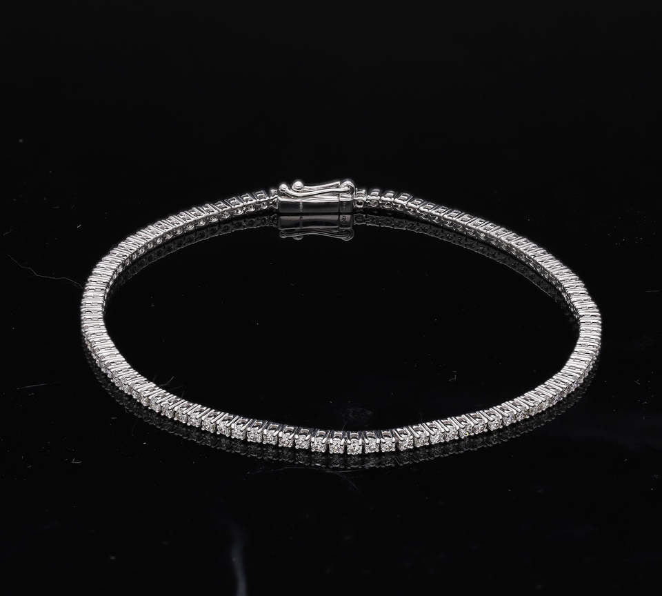 สร้อยข้อมือเทนนิสเพชรแท้ชุบทองคำขาว 14K ดีไซน์เรียบหรู ประดับเพชรทรงบริลเลียนต์ ตัดแบบ Prong-Set ดีไซน์คลาสสิกเหนือกาลเวลา
