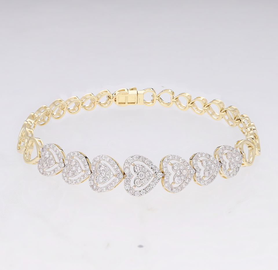 สร้อยข้อมือโรเดียมทอง14K สุดหรูสำหรับสตรีประดับเพชรประดับรูปหัวใจคู่สุดโรแมนติก