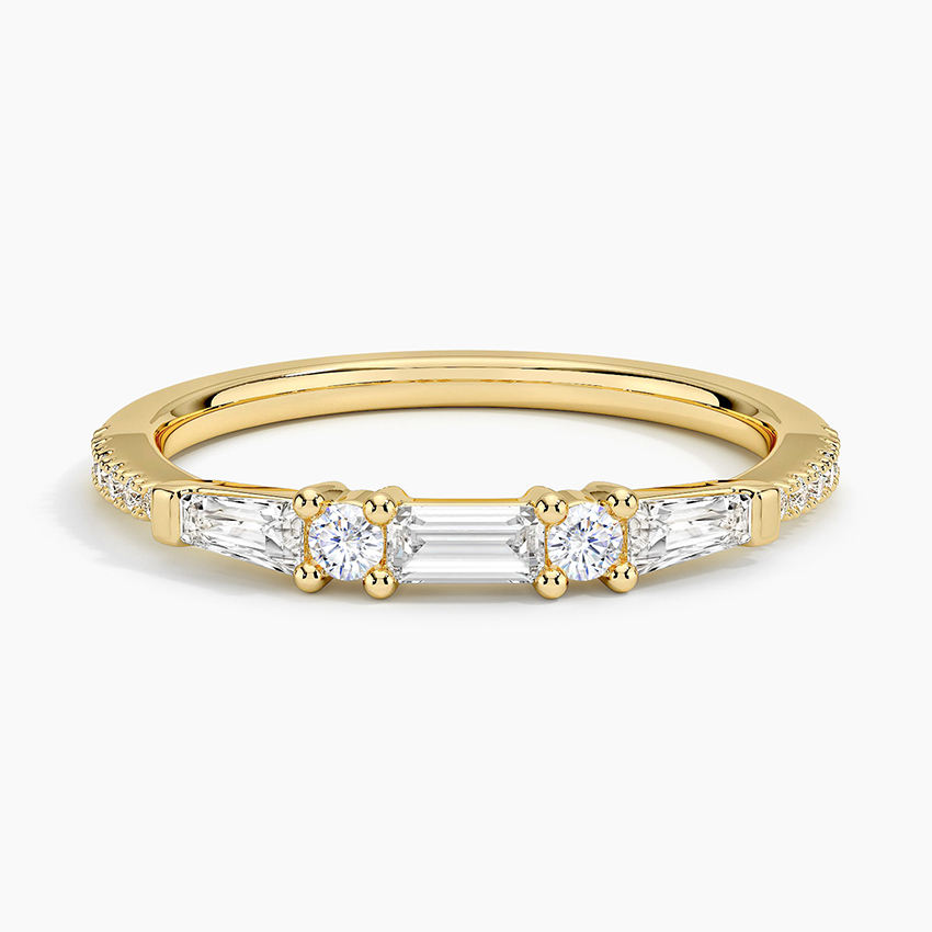 แหวนเพชรทรงบาแกตต์ทรงเรียวสีโรสโกลด์14K หรูหราดีไซน์เรียบง่ายสไตล์คลาสสิกสำหรับวันครบรอบมาตรฐาน IGI