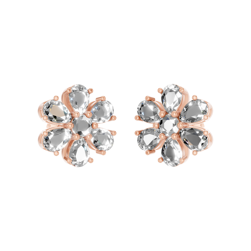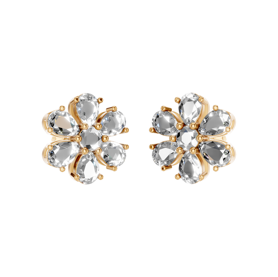 Igi ทองแท้14K อันหรูหราได้รับการรับรองจากห้องปฏิบัติการต่างหูเม็ดเดี่ยวลายดอกไม้ประดับเพชรของขวัญอย่างประณีตแวววาว