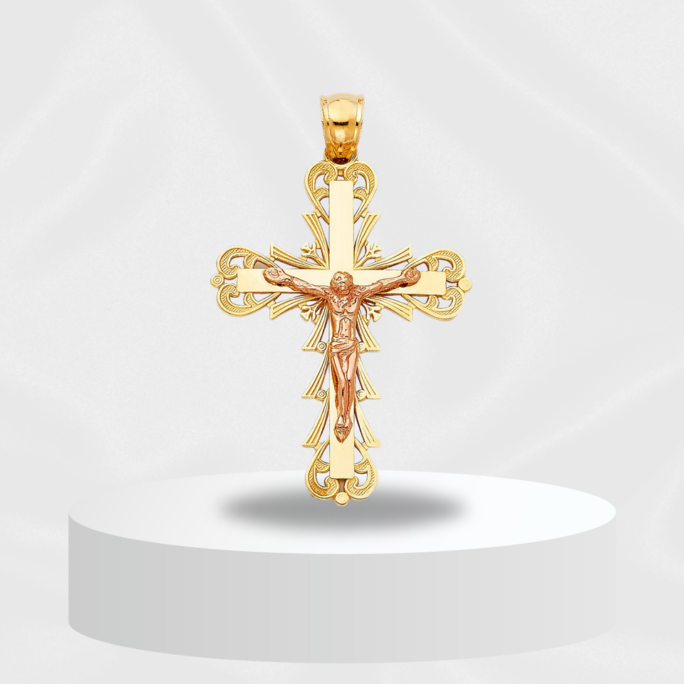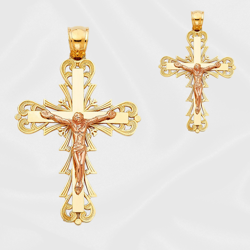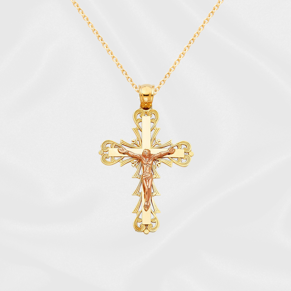 Elegant 14K Two Tone Gold-Plated Children's Crucifix Pendant Fashionable Steel Christian Cross Jewelry Customizable Style