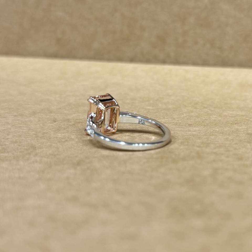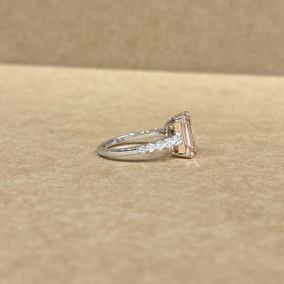 แหวนเพชรทรงเหลี่ยมมรกตสีชมพู 14K ทองคำขาว ดีไซน์หรูหรา น้ำหนัก 4.42 กะรัต พร้อมเพชรข้าง 0.56 กะรัต แหวนแต่งงานระดับพรีเมียม