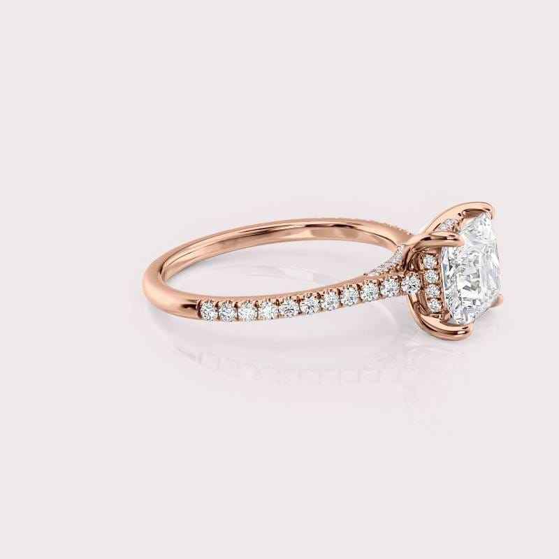 แหวนเพชรทรงปรินเซสคัท 14K ทองคำขาว/โรสโกลด์/เหลือง ชุบโรเดียม ประดับเพชรเลี้ยงในห้องปฏิบัติการ ดีไซน์หรูหรา พร้อมกรอบเพชรแบบกรงเล็บ รับรองโดย IGI