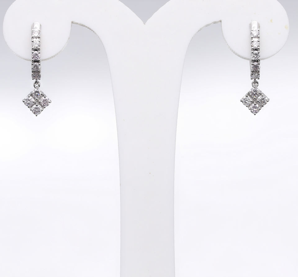 ต่างหูห่วงชุบโรเดียมทองคำขาว 14K ดีไซน์เก๋ไก๋แบบห้อยประดับเพชรธรรมชาติทรงเหลี่ยมเจียระไนวิบวับสุดคลาสสิก