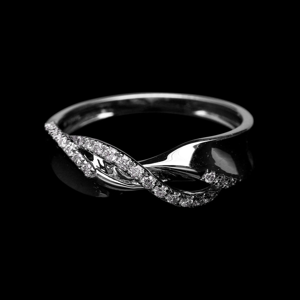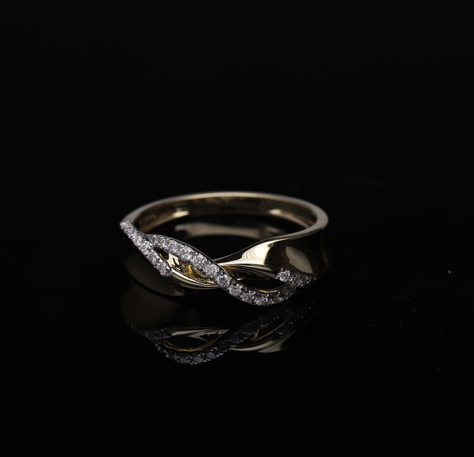 Elegant 14K Yellow Gold Rhodium Plated Classic Diamond Ring Natural Diamond Twist Design Pave Set Brilliant Diamonds Overlapping