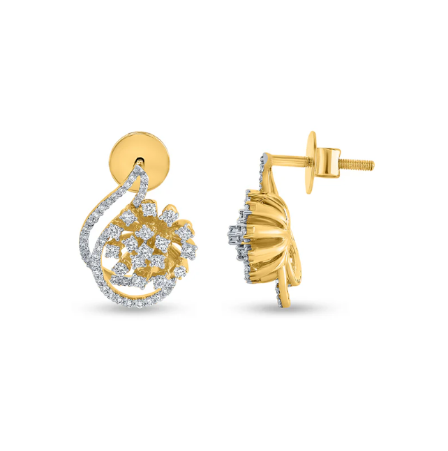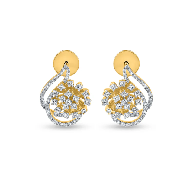 ต่างหูเม็ดเดี่ยวประดับเพชรทรงหยดน้ำสีทอง14กะรัตที่มีการออกแบบที่ประณีตและทันสมัยเหนือกาลเวลาจากอินเดีย