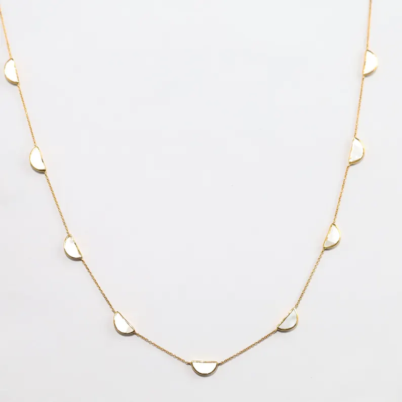 สร้อยคอทองคำ 18K ประดับมุกเปลือกหอยทรง D น้ำหนัก 8.57 กะรัต ดีไซน์หรูหรา รูปทรงครึ่งวงกลม 9 ชิ้น สำหรับงานหมั้นและงานแต่งงาน