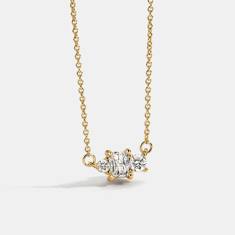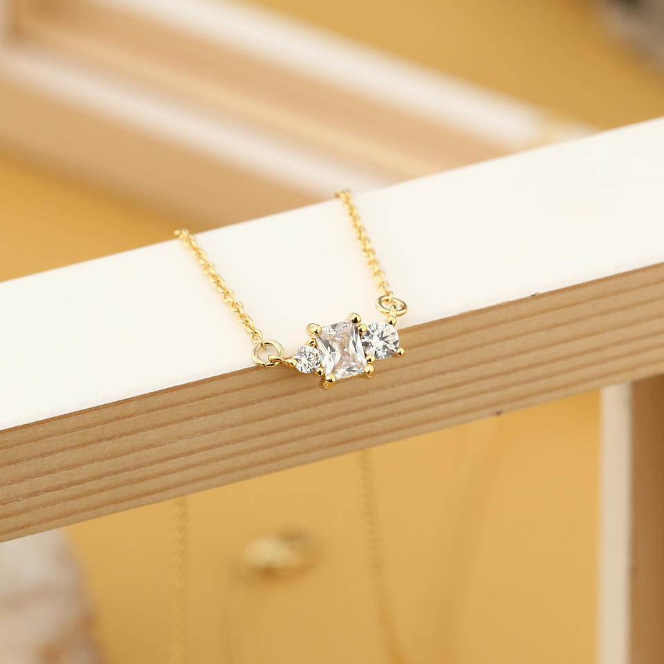 สร้อยคอจี้ทอง 18K ชุบทองเหลือง ดีไซน์เรียบหรู ประดับเพชรซิคอน 5A รูปทรงเรขาคณิต สไตล์ทันสมัย เหมาะสำหรับเป็นของขวัญสำหรับผู้หญิง