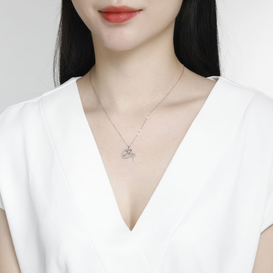 สร้อยคอจี้กุญแจล็อคหัวใจเพชรธรรมชาติ