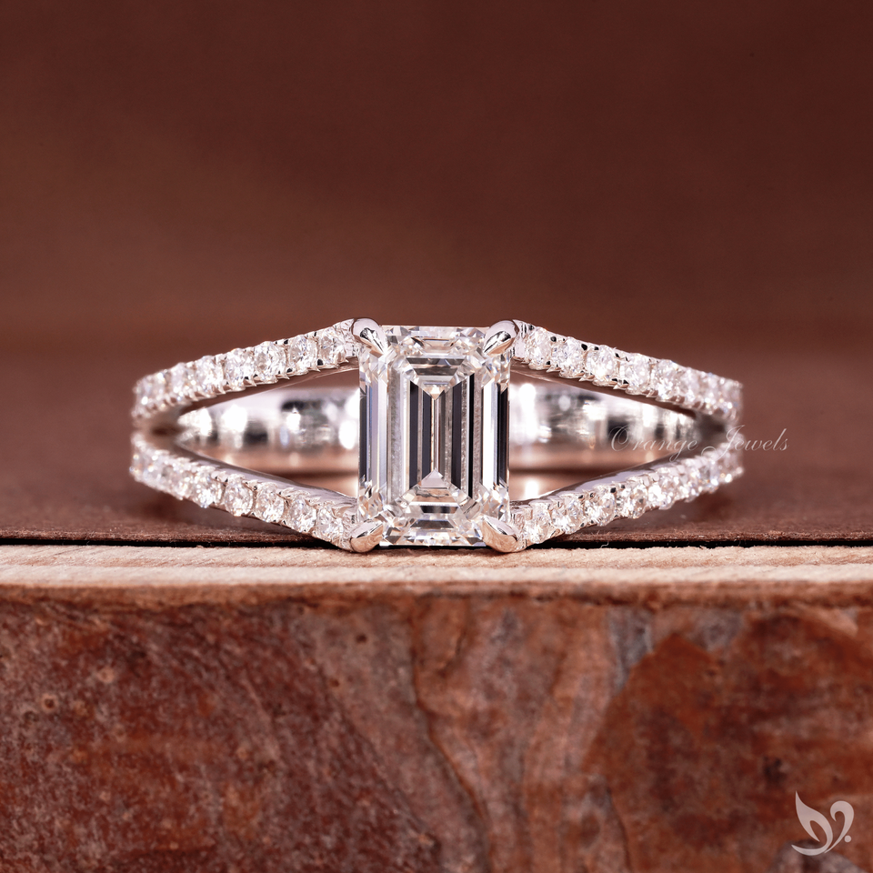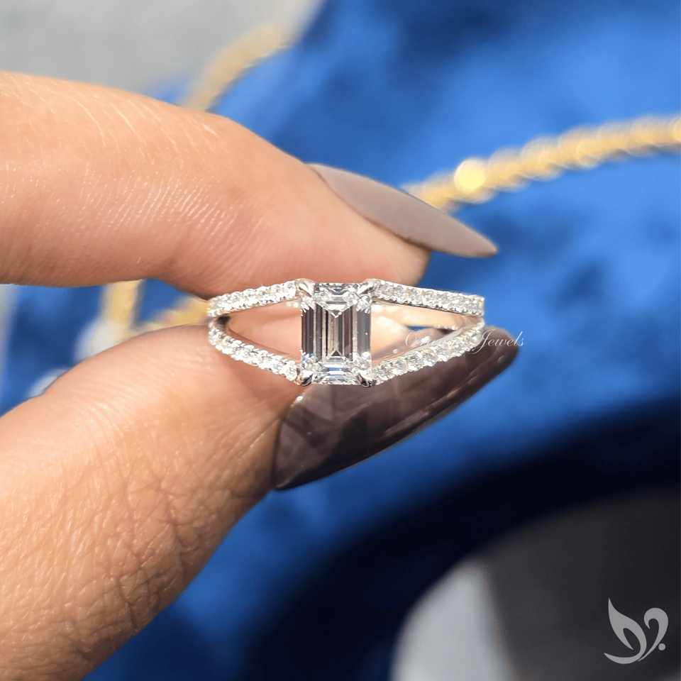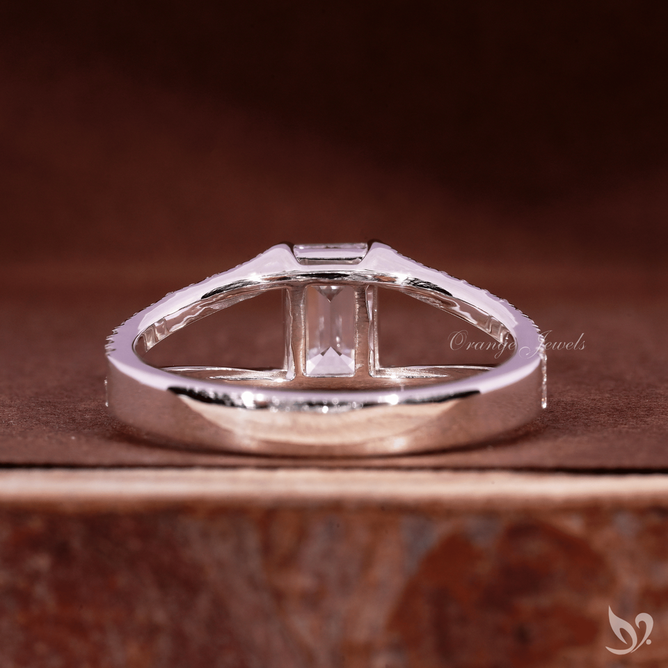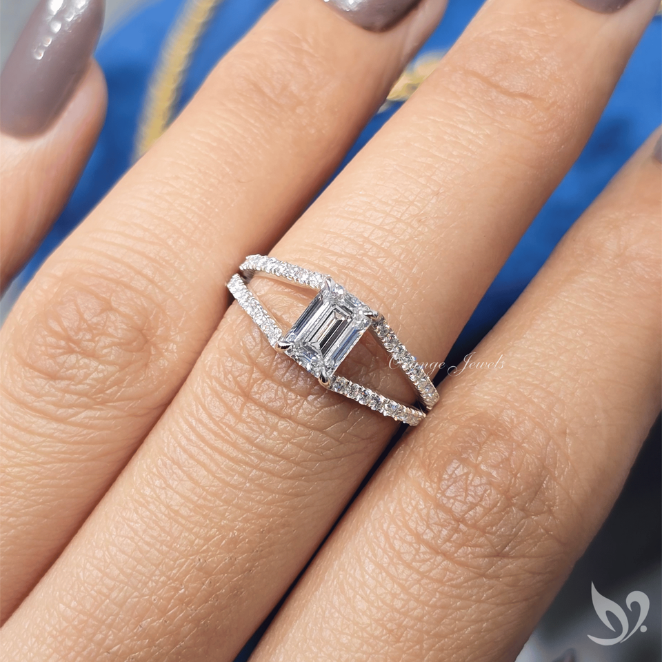 แหวนเพชรทรงเหลี่ยมมรกต 1 กะรัต ดีไซน์หรูหรา ประดับเพชรเม็ดเล็กๆ ด้วยเทคนิคไมโครเพฟ ทองคำขาว 10K รับรองโดย IGI เหมาะสำหรับเป็นแหวนหมั้นหรือแหวนครบรอบ