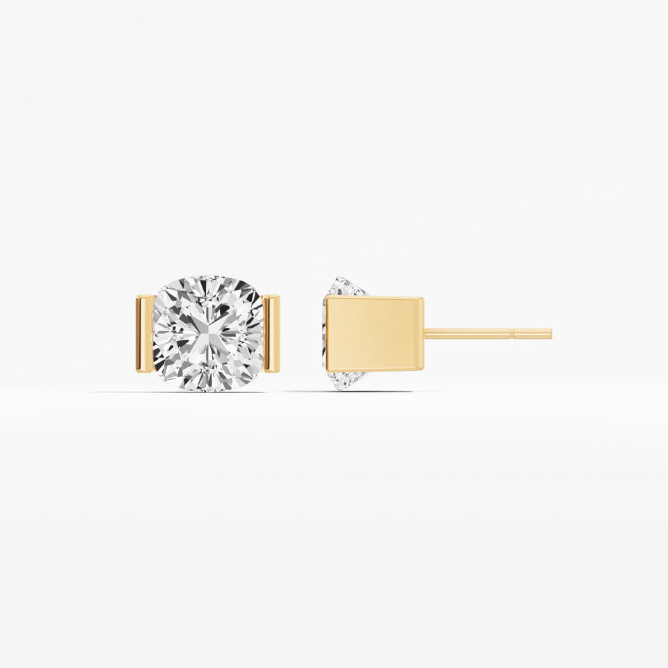 ต่างหูเพชรทรงสี่เหลี่ยมคุชชั่น 2.03 กะรัต ดีไซน์หรูหรา ผลิตด้วยเพชรเลี้ยงในห้องปฏิบัติการ ตัวเรือนทำมือแบบ Bar Setting ชุบโรเดียม ทอง 14K/18K