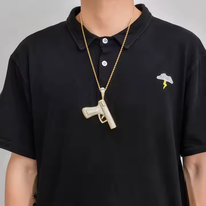 สร้อยคอเพชรมอยส์ซอไนต์ทรงกลมสีเงิน925 2นิ้วสง่างามจี้ดีไซน์รูปปืนพกประดับเพชรสตรีทแวร์ทันสมัยเครื่องประดับฮิปฮอป