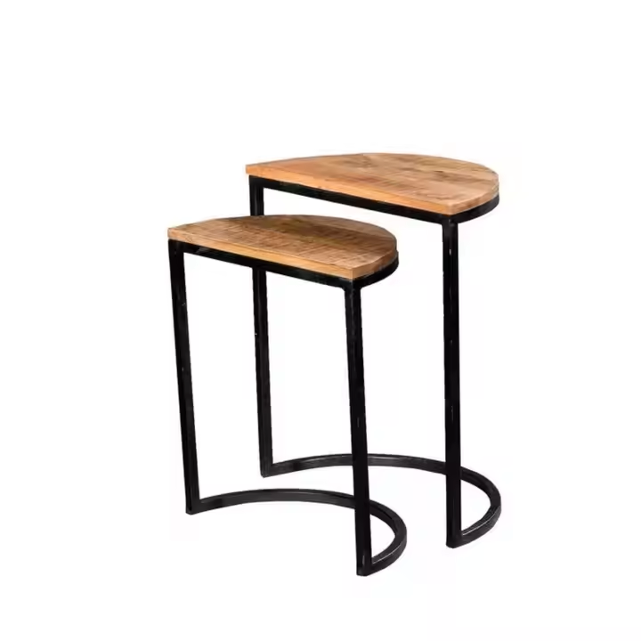 ชุดโต๊ะกาแฟ2ชิ้นหรูหราดีไซน์ทางอุตสาหกรรมทำจากเหล็กทำจากไม้ธรรมชาติเน้นความโดดเด่นเฟอร์นิเจอร์ตกแต่งบ้านสำหรับการอยู่อาศัย