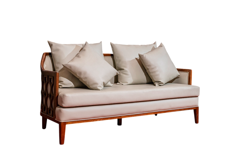 ที่นั่งโซฟาหนังไม้แอช2-Seater หรูหราพร้อมกรอบตกแต่งสำหรับห้องนั่งเล่นโรงแรมหรือเฟอร์นิเจอร์วิลล่า