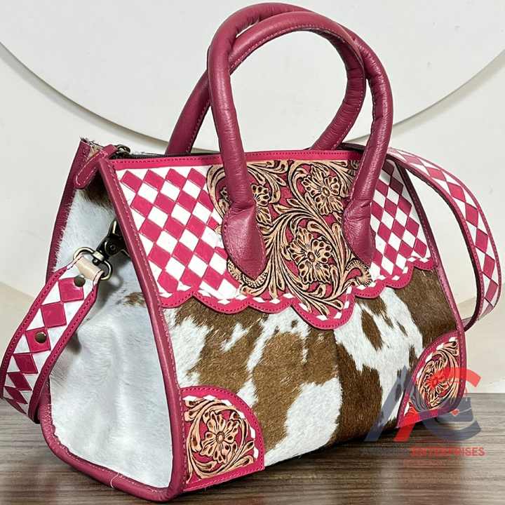Product name:Hand Tooled Checkered Leather Crossbody Tote Bag