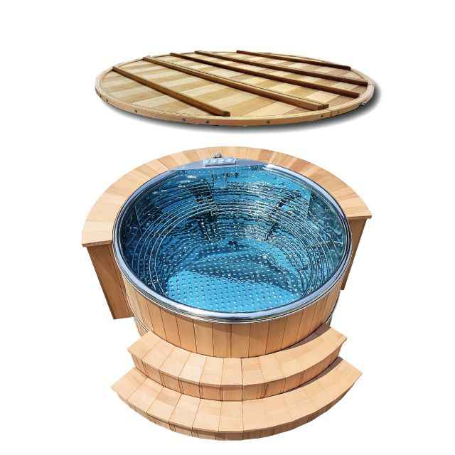 Elegant 220cm Outdoor Premium Red Cedar Cover 1 Stair Luxurious Stainless Steel Whirlpool Spa for Villa Hotel Use 8-10 Person