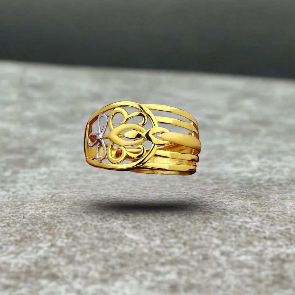 Elegant 22K Gold Designer Ring for Women Intricate Filigree Pattern & Lightweight Design Perfect Daily Wear & Special Occasion