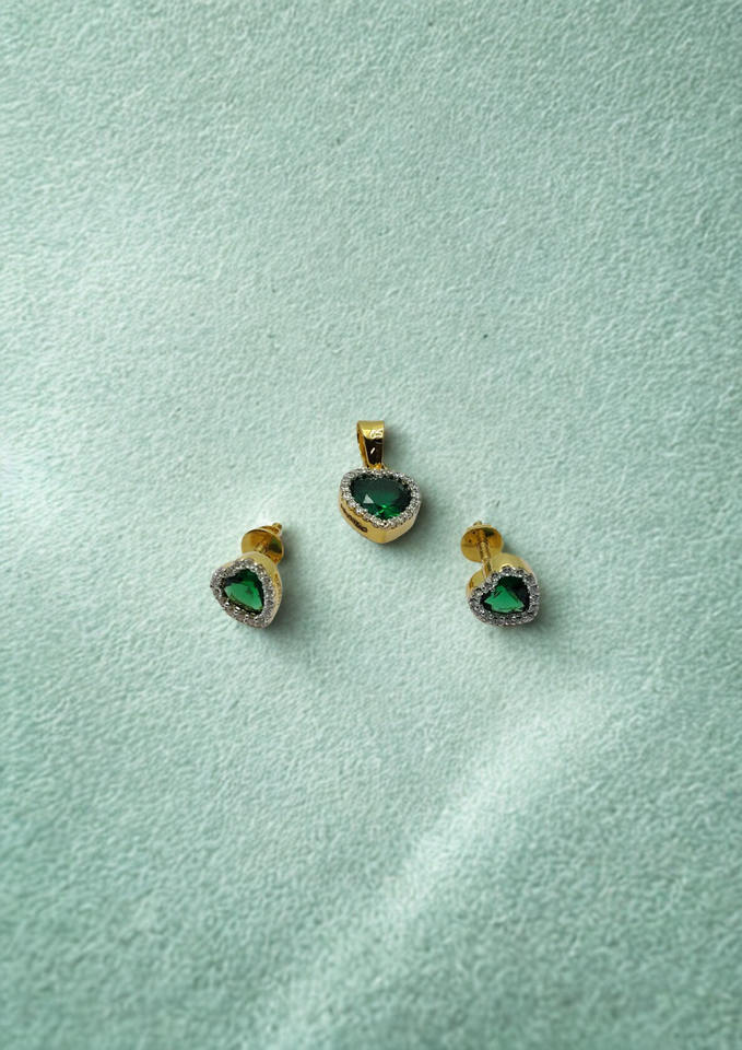 ต่างหูรูปหัวใจประดับหินสีเขียวทอง 22K ดีไซน์หรูหรา พร้อมจี้เข้าชุด เครื่องประดับดีไซน์เนอร์สุดหรูสำหรับผู้หญิง