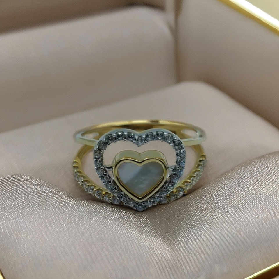 แหวนรูปหัวใจทองคำ 22K ดีไซน์หรูหรา ประดับเพชรรอบวง แหวนนิ้วดีไซน์เก๋สำหรับผู้หญิง เครื่องประดับทันสมัยสำหรับใส่ทุกวัน