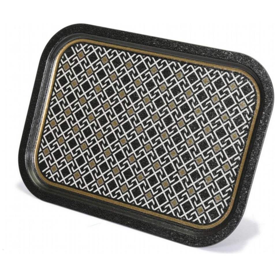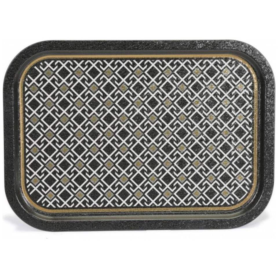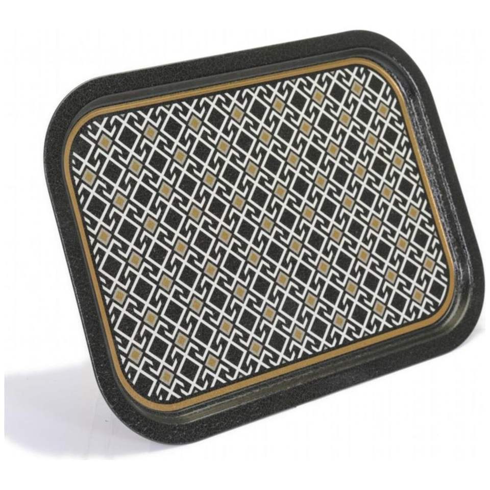 ถาดเสิร์ฟไม้ทรงสี่เหลี่ยมผืนผ้า ขนาด 285x400 มม. ดีไซน์ลายเรขาคณิตไร้รอยต่อ พื้นหลังสีดำ ผลิตจากเหล็กมุก แบรนด์ Pearl Steel