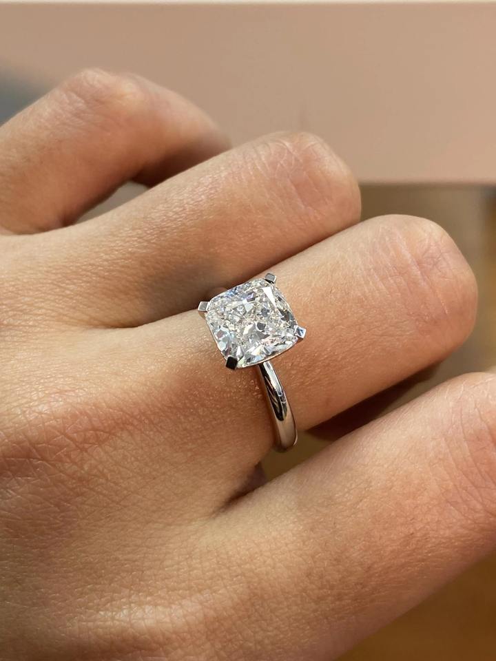 แหวนหมั้นเพชรทรงคุชชั่น 1 กะรัต ดีไซน์หรูหรา เพชรเพาะเลี้ยง สี E ความสะอาด VVS2 รับรองโดย IGI ตัวเรือนทองคำขาว 14K แบบหนามเตย น้ำหนัก 3.6 กรัม