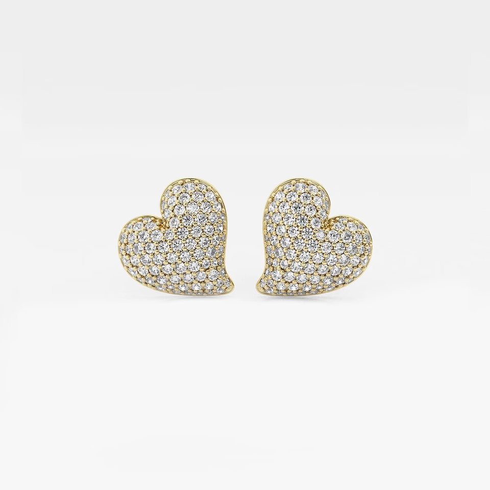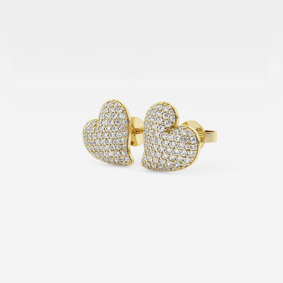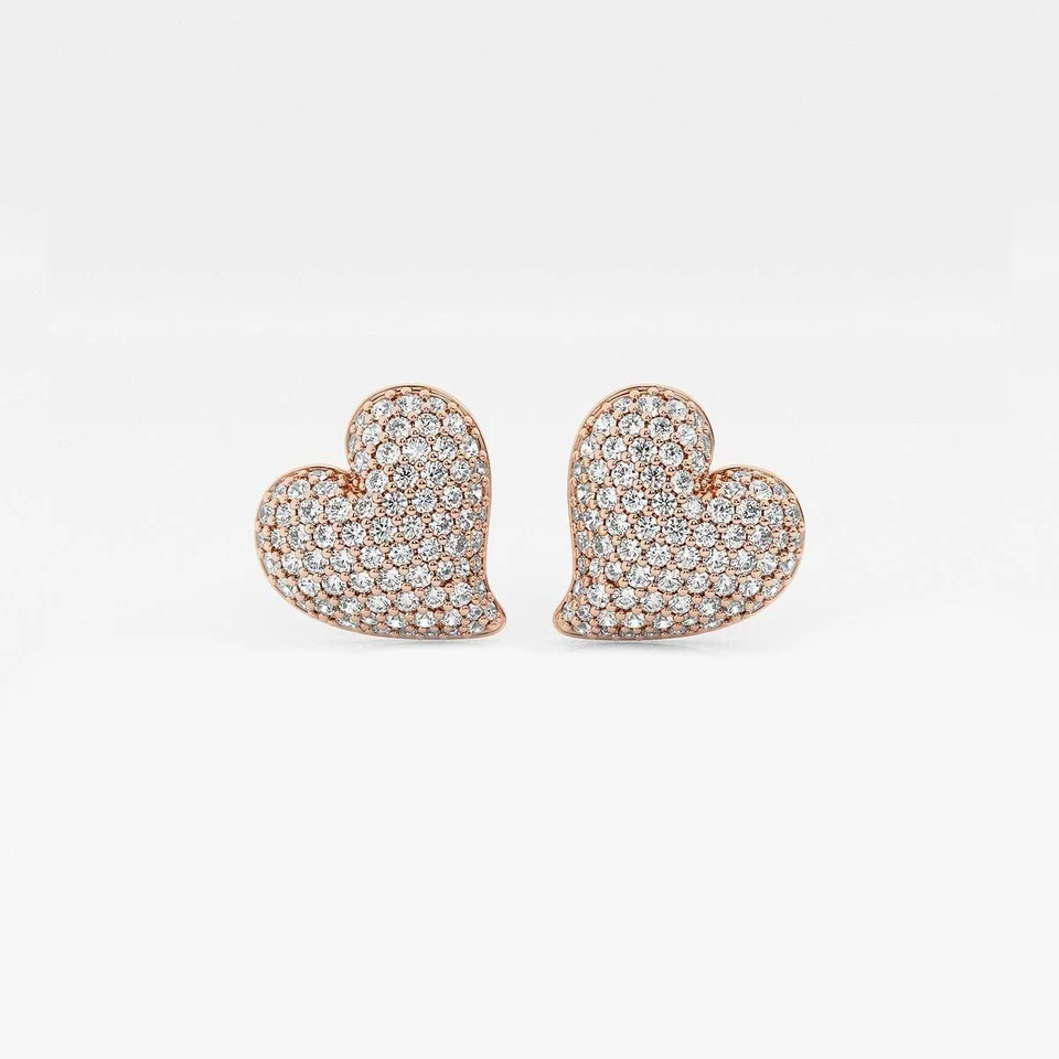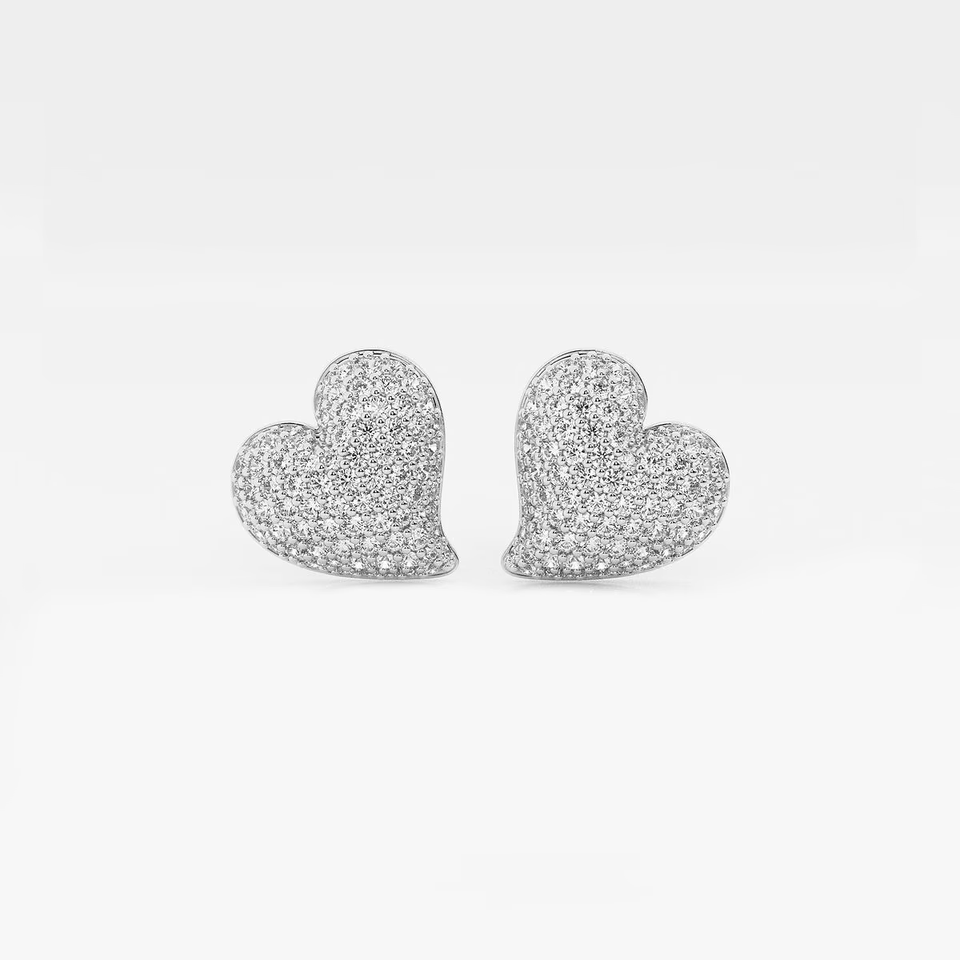 ต่างหูเพชรทรงหัวใจแบบฝังเพชรทรงกลม 3/4 กะรัต ดีไซน์หรูหรา ประกายระยิบระยับ สวยงามอย่างมีระดับ ผลิตจากเพชรที่เพาะเลี้ยงในห้องปฏิบัติการ เหมาะสำหรับเป็นเครื่องประดับสุดหรู