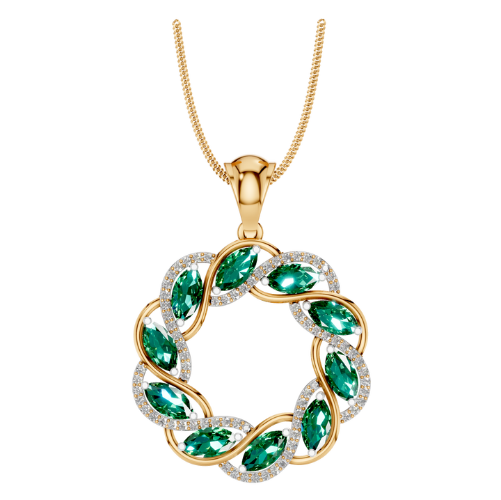 Twisted Circle Pendant with Marquise Emeralds and Natural Diamonds