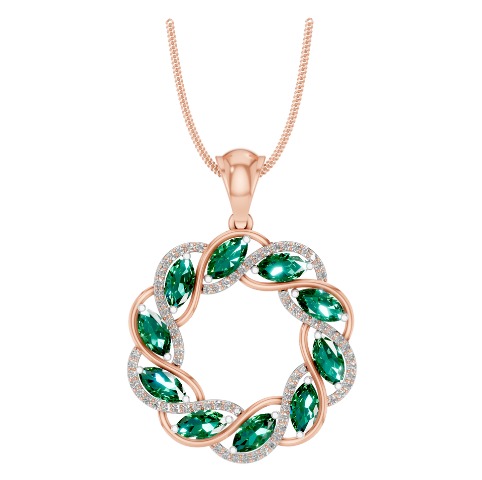 Style:Twisted Circle Pendant with Marquise Emeralds and Natural Diamonds