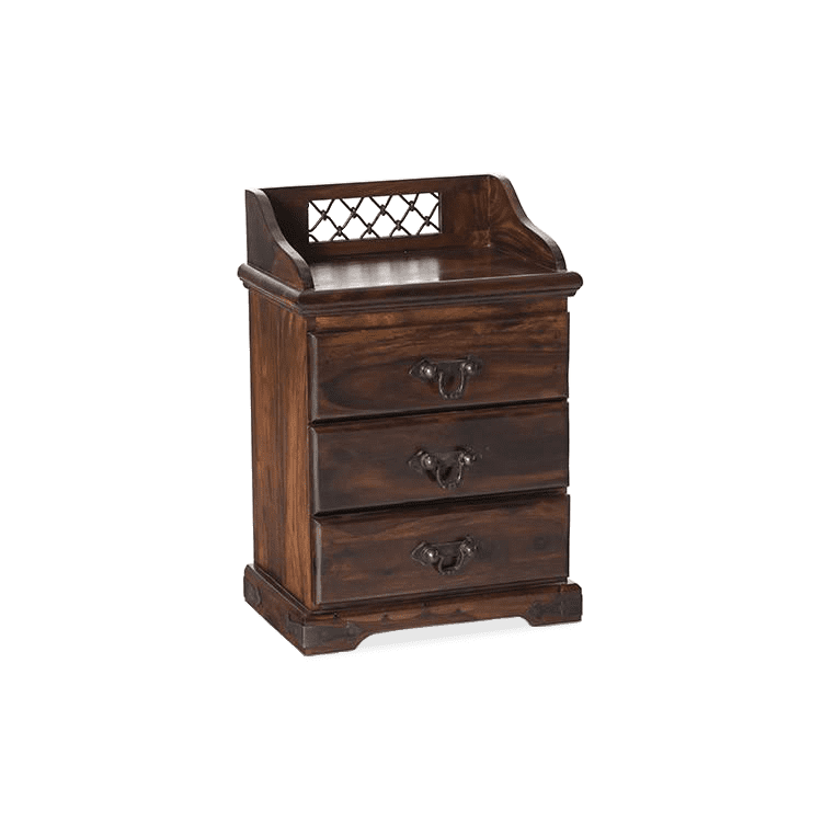 ชุดห้องนอน Jali ไม้เนื้อแข็ง3ลิ้นชักหรูหราพร้อมโต๊ะข้างเตียงและม้านั่ง