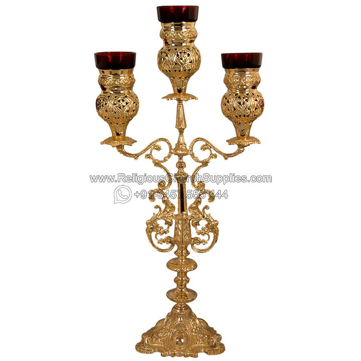 เชิงเทียนทองเหลืองทึบ3แสงประเภทเทียน