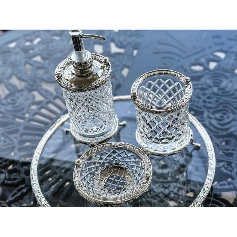 ชุดห้องน้ำคริสตัล3ชิ้นหรูหราสีทองเงินหรือสีโบราณของขวัญสวยสำหรับบ้านใหม่