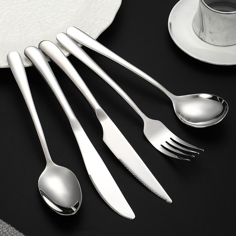 ชุดช้อนส้อมสแตนเลส 304 ดีไซน์หรูหรา ด้ามจับหนา สำหรับโต๊ะอาหารตะวันตก งานแต่งงาน สีเงิน เป็นมิตรกับสิ่งแวดล้อม มีด ช้อน ส้อม