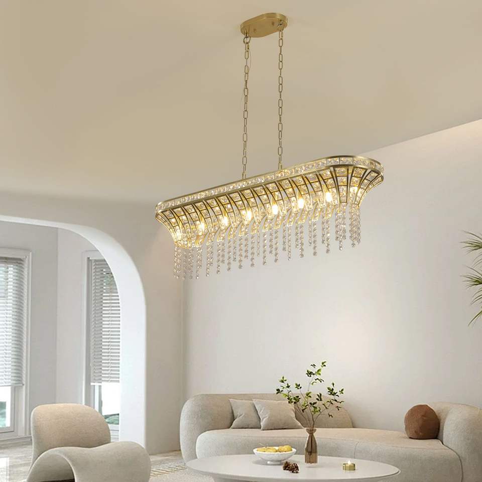 โคมไฟระย้าคริสตัลทรงสี่เหลี่ยมผืนผ้าทันสมัยขนาด 39 นิ้ว ดีไซน์หรูหรา สีทอง ประดับด้วยลูกปัดแบบเรียงซ้อน สำหรับโคมไฟระย้าและโคมไฟห้อย
