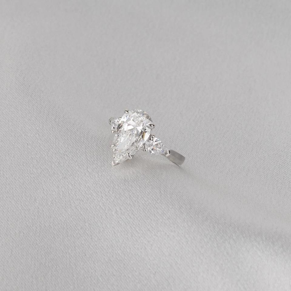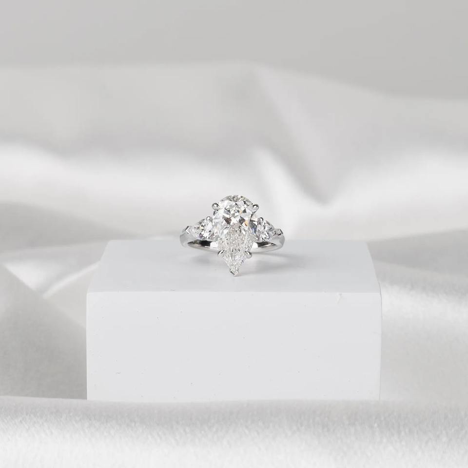 แหวนเพชรทรงหยดน้ำ 3 กะรัต ดีไซน์หรูหรา ทองคำขาว 14K เพชรเพาะเลี้ยงคุณภาพ D VVS2 รับรองโดย IGI แหวนแต่งงานสำหรับผู้หญิง