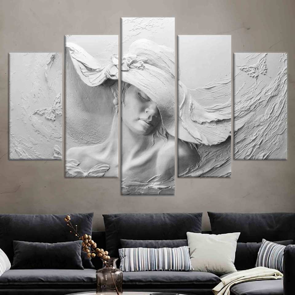 ภาพพิมพ์บนผ้าใบลายภาพเหมือนผู้หญิง 3 มิติ สวยงาม: ศิลปะการออกแบบกราฟิกสมัยใหม่ ชุดผ้าใบ 5 ชิ้นแบบคละลาย