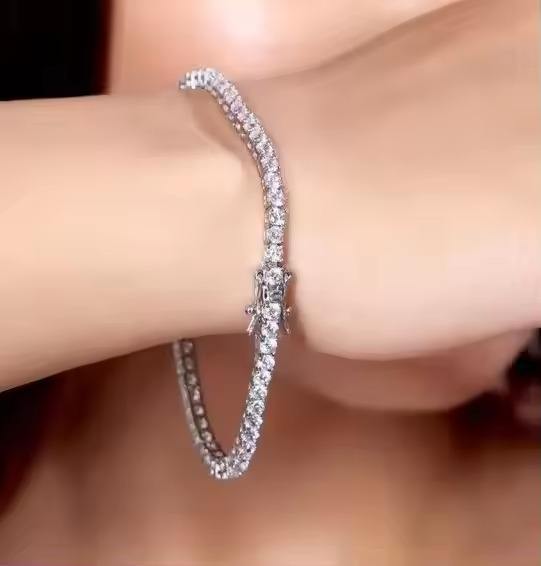 สร้อยข้อมือเพชรโมอิส5.0มม. สำหรับผู้หญิงสร้อยข้อมือเพชร3.00มม. 925กำไลข้อมือสีเงิน14kt สีทอง