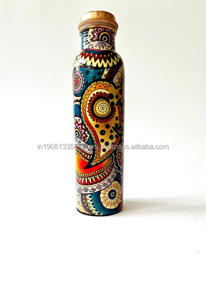 ขวดน้ำทองแดง500มล. หรูหราจาก100% อินเดียทองแดงบริสุทธิ์พร้อมฝาปิดอายุรเวทประโยชน์ต่อสุขภาพอุปกรณ์เสริมเคลือบกันรอย