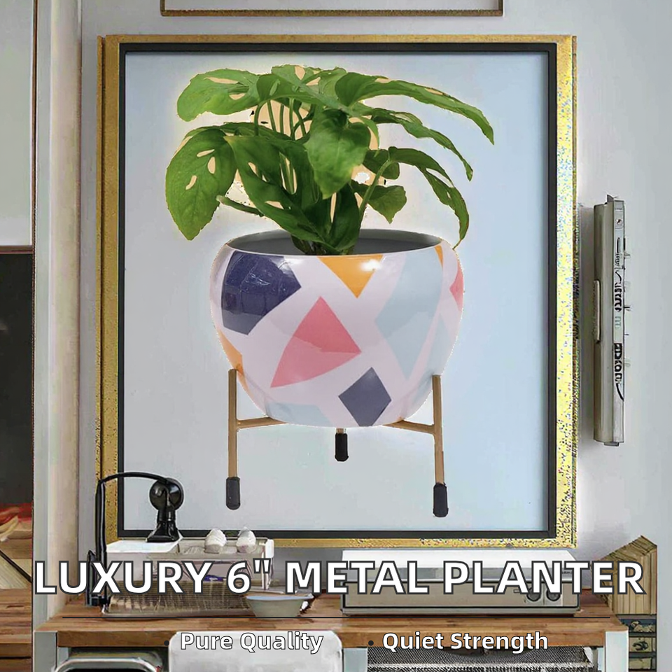 กระถางดอกไม้โลหะตกแต่งบ้านหรูหราขนาด 6 นิ้ว ดีไซน์คลาสสิก แจกันเหล็กสำหรับสวน พิมพ์ลายหลากสี ดีไซน์สวย