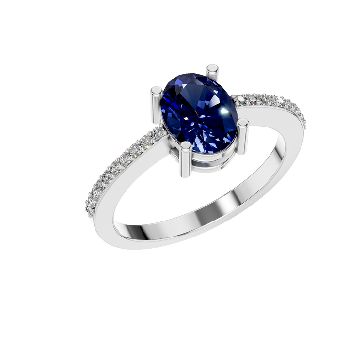 แหวนหมั้นผู้หญิงเงินแท้ 925 ชุบโรเดียม ประดับมอสซาไนต์ทรงรีสังเคราะห์ ดีไซน์โดดเด่น แบบ Solitaire Prong