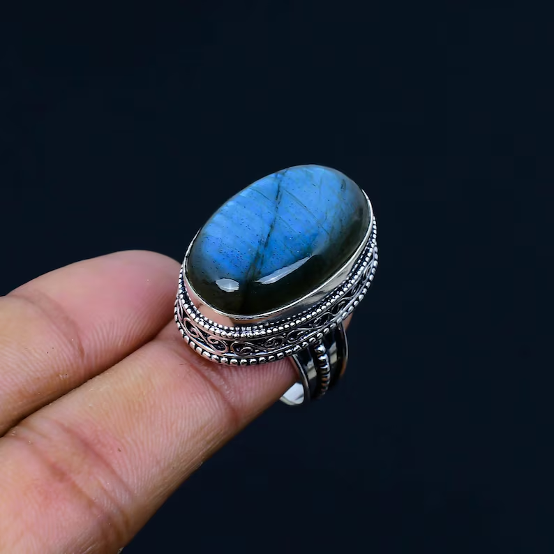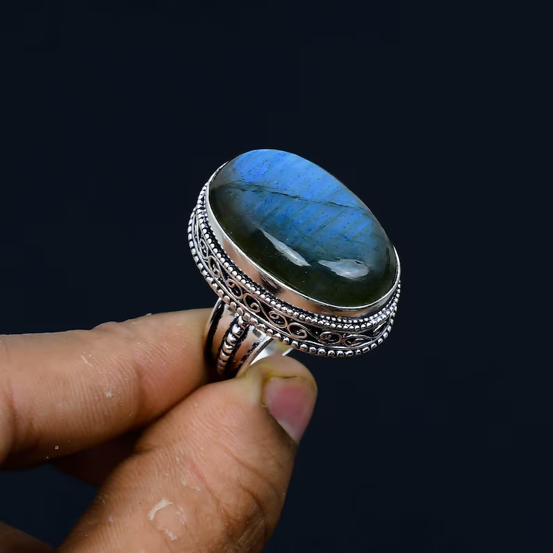 แหวนหมั้น925สุดหรูแหวนเงินแท้สำหรับผู้หญิงแหวนลาบราดอไรต์สีฟ้าแหวนประณีตเครื่องประดับแบบประณีตผู้ผลิตจำนวนมาก