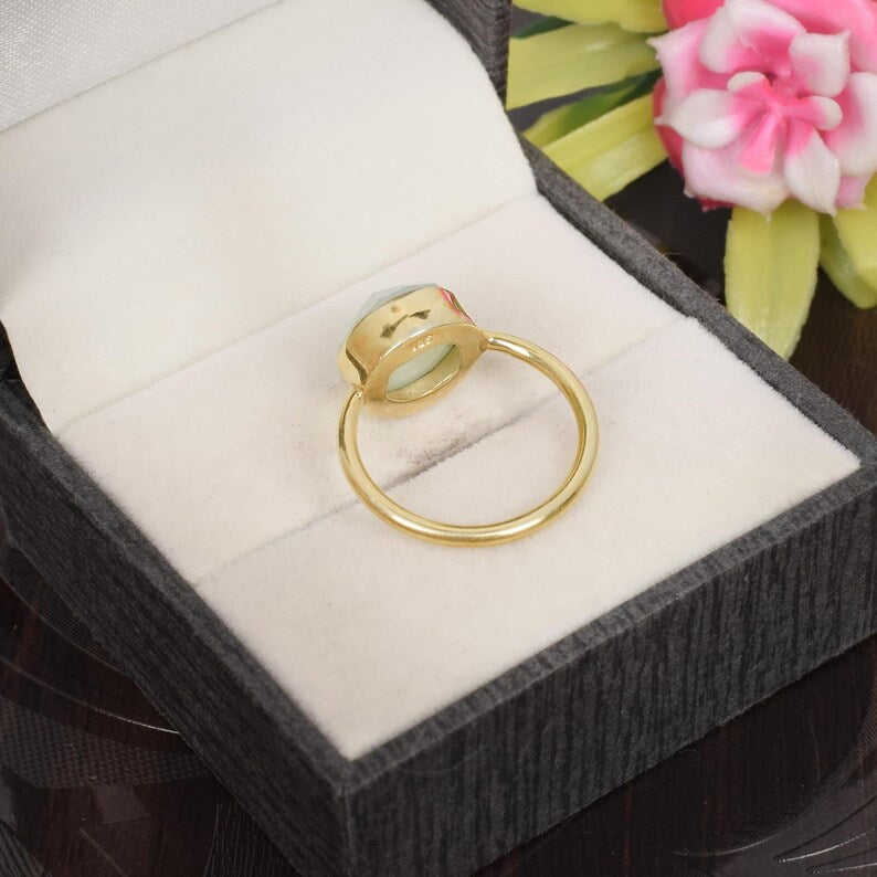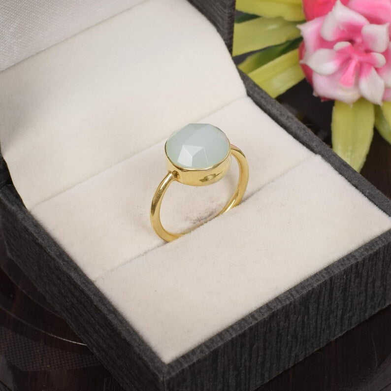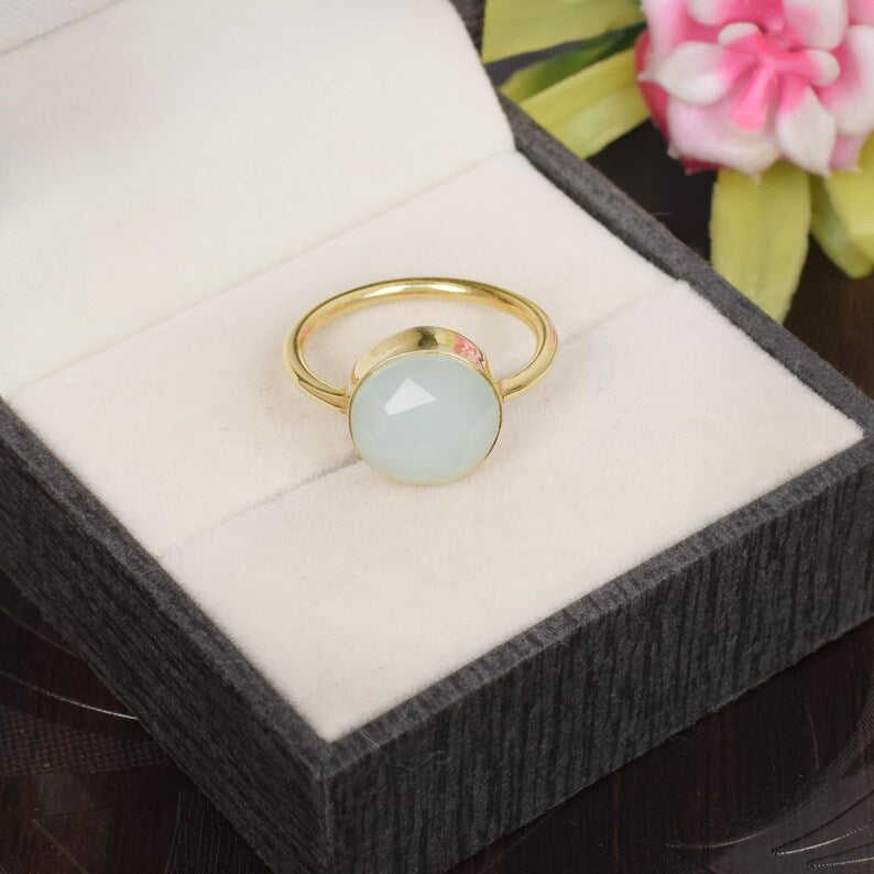 แหวนเงินแท้ 925 ดีไซน์หรูหรา ประดับด้วยพลอยอะควาแคลซิโดนีขนาด 11 มม. น้ำหนัก 3.46 กรัม เครื่องประดับพลอยแบบเม็ดเดี่ยว