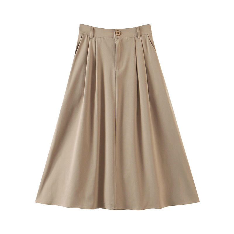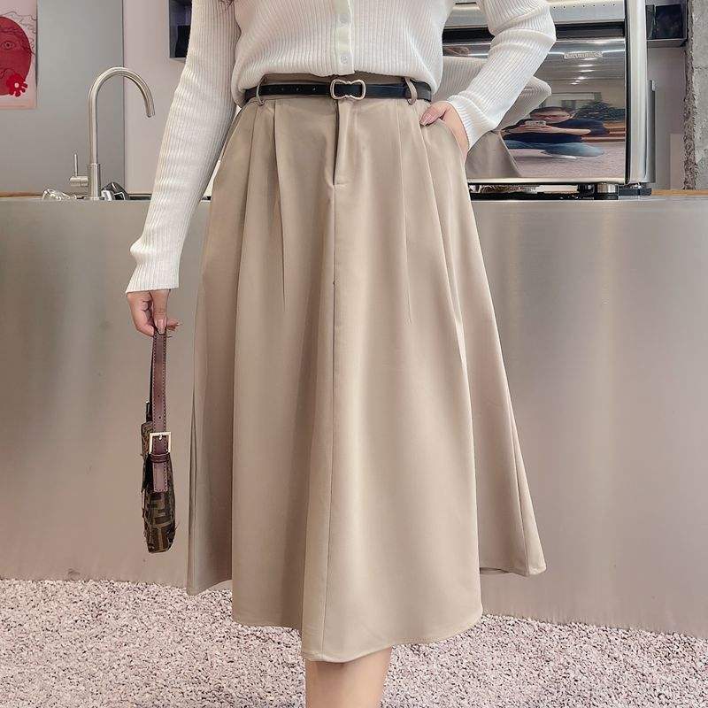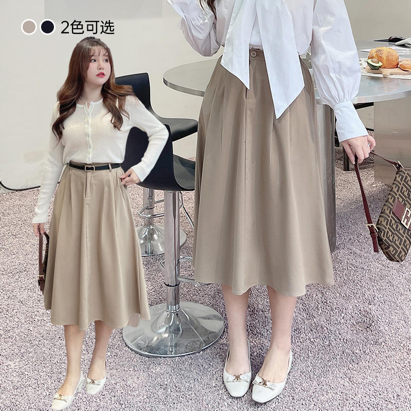 กระโปรงทรงเอหรูหราสำหรับผู้หญิง สีพื้น ใส่ทำงานได้ ไซส์พลัส เอวธรรมชาติ ผ้าโพลีเอสเตอร์ N8294