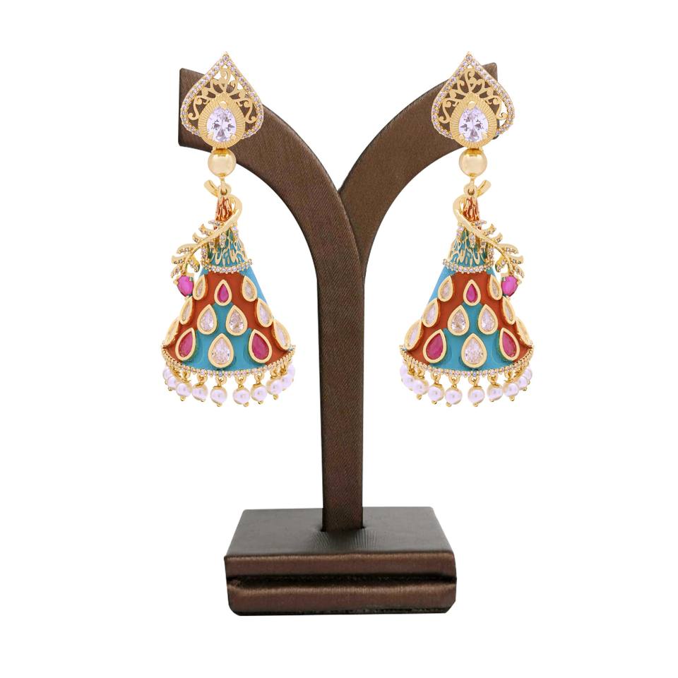 Gold Plated AD Dangle Jumki EarringsEarrings Type